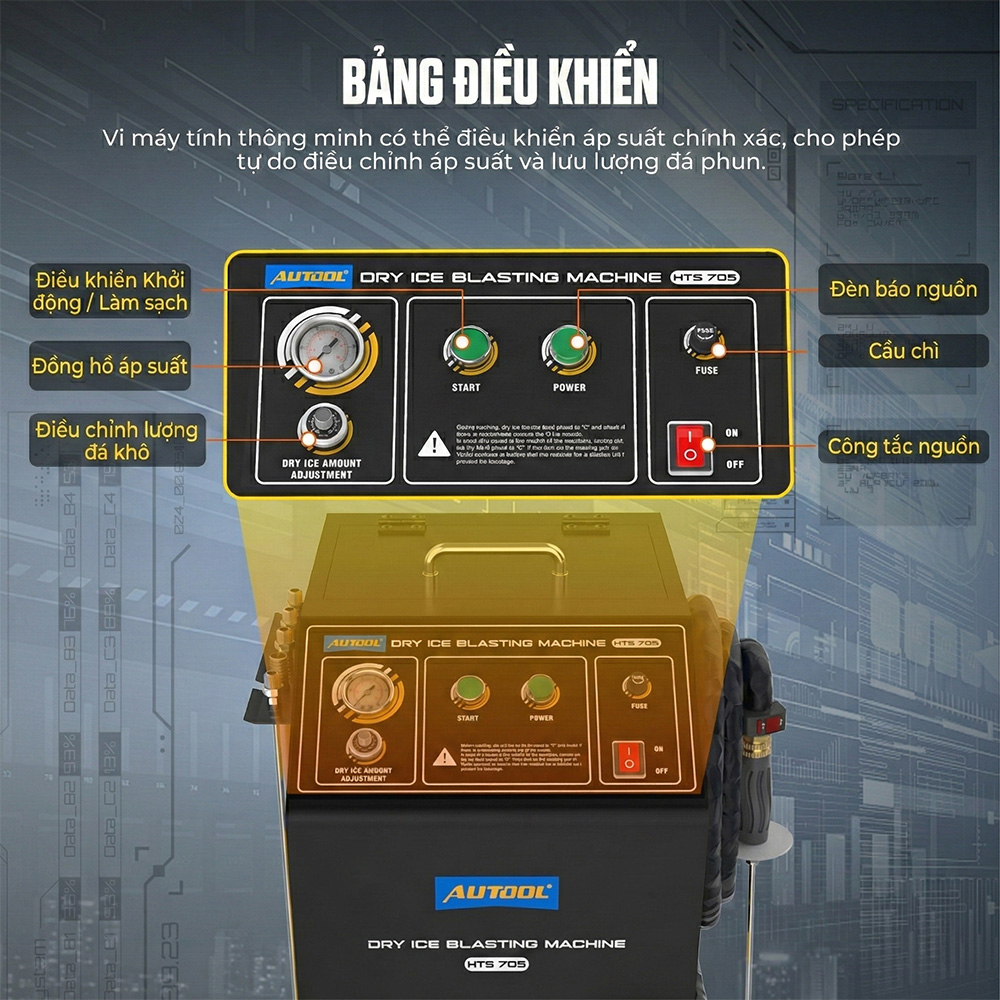 MÁY BẮN ĐÁ KHÔ CO2 AUTOOL HTS705: GIẢI PHÁP LÀM SẠCH MUỘI THAN ĐỘNG CƠ NHỎ GỌN, CƠ ĐỘNG VÀ HIỆU QUẢ