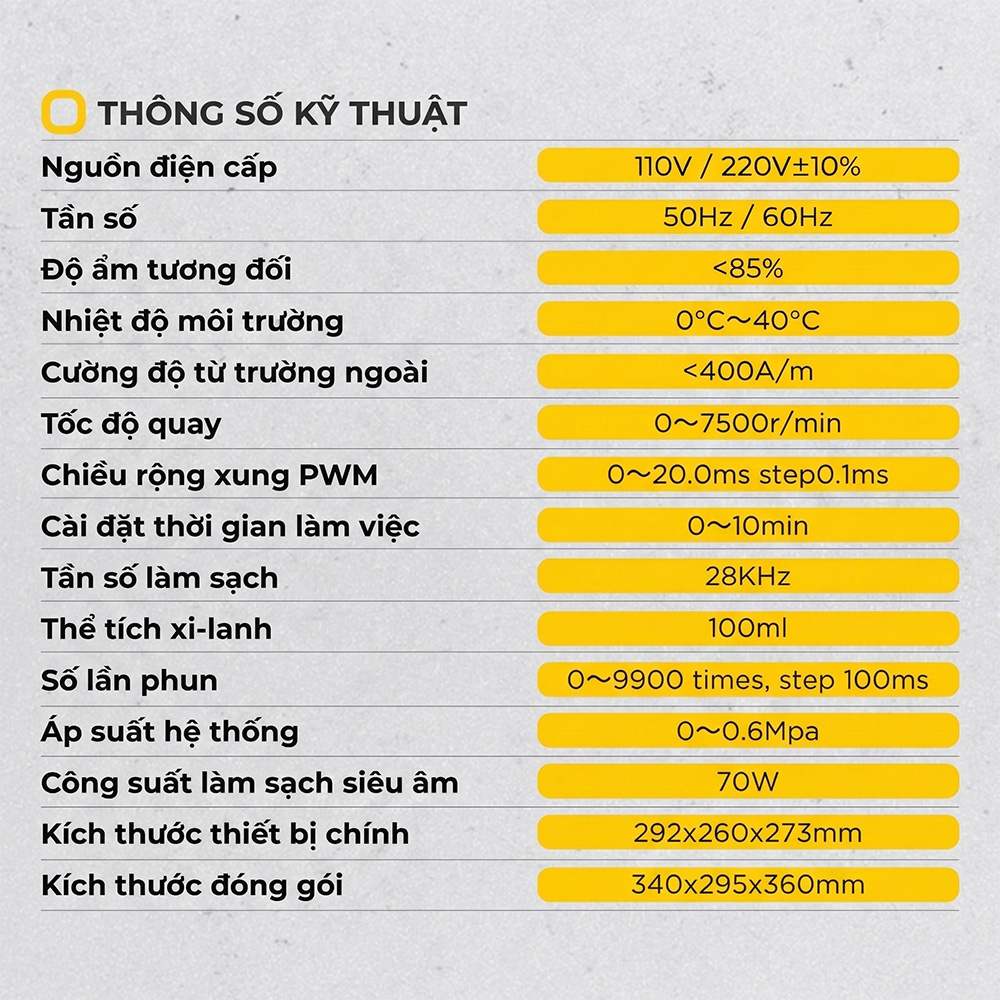Tần số vệ sinh siêu âm28 KHz (Xâm thực bọt khí lớn, phá vỡ cặn carbon mạnh mẽ)