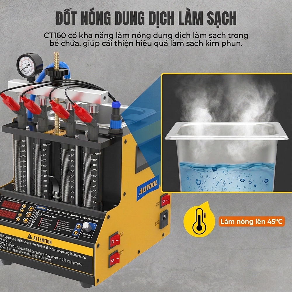 MÁY KIỂM TRA VÀ SÚC RỬA KIM PHUN AUTOOL CT160: CÔNG NGHỆ GIA NHIỆT 40°C VÀ ĐIỀU KHIỂN ÁP SUẤT VÒNG KÍN CHUYÊN NGHIỆP