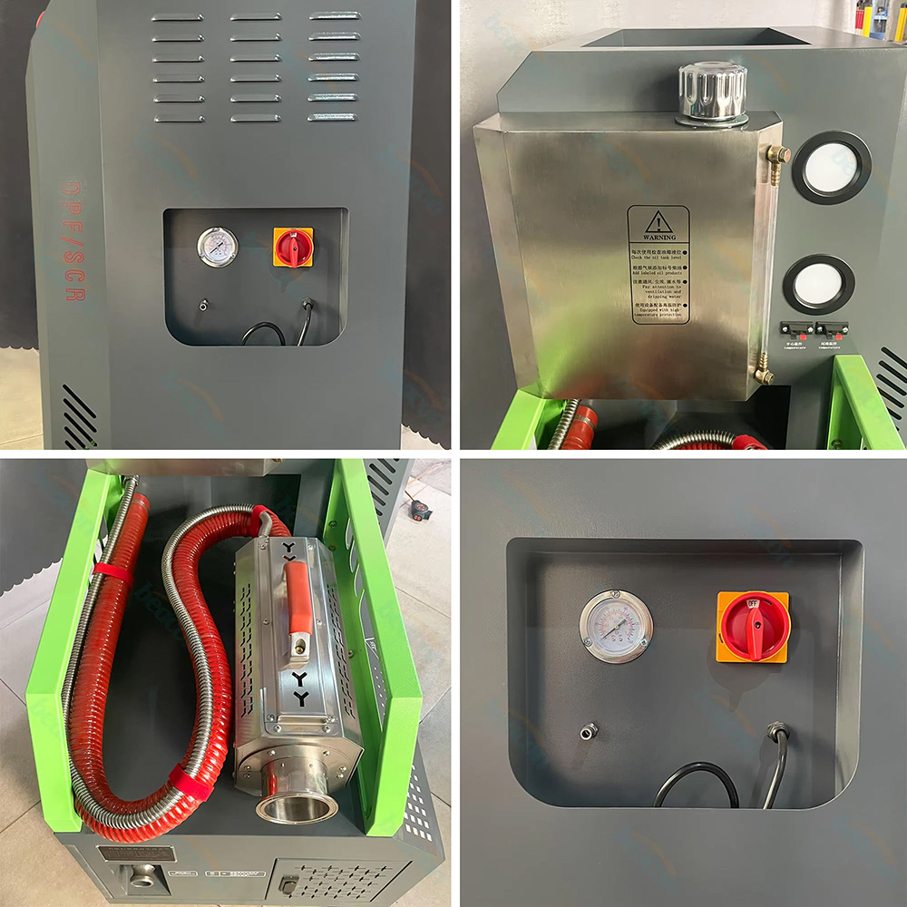 Chẩn đoán trước và sau (Chức năng kiểm tra áp suất hoàn toàn tự động): Làm sao để biết bầu lọc đã sạch? Máy tích hợp cảm biến đo chênh lệch áp suất (Backpressure test). Trước khi nung, máy đo áp suất để thấy sự tắc nghẽn. Sau khi làm sạch, máy đo lại lần nữa để chứng minh sự thông thoáng. Kết quả này chính là bằng chứng thuyết phục nhất để thu tiền của khách hàng.